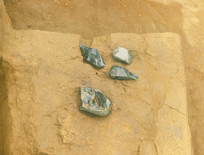 石材は、チャート製とガラス質緻密黒色安山岩製の2種類で、特に武蔵野台地では産出しない安山岩は、利根川近辺で採取されたものであることが最近の研究で判明しています。