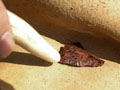 石器つくりは、原料となる石材を 入手するところからはじまります。 石器を剥ぎ取る前に、 石の形を整え、準備します。 準備された石核から、 剥片を剥ぎ取ります 剥ぎ取った剥片を、 目的の石器に加工します。